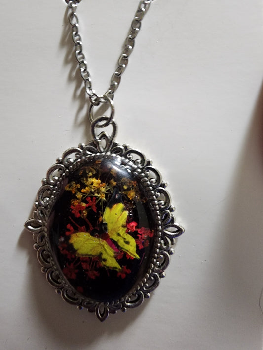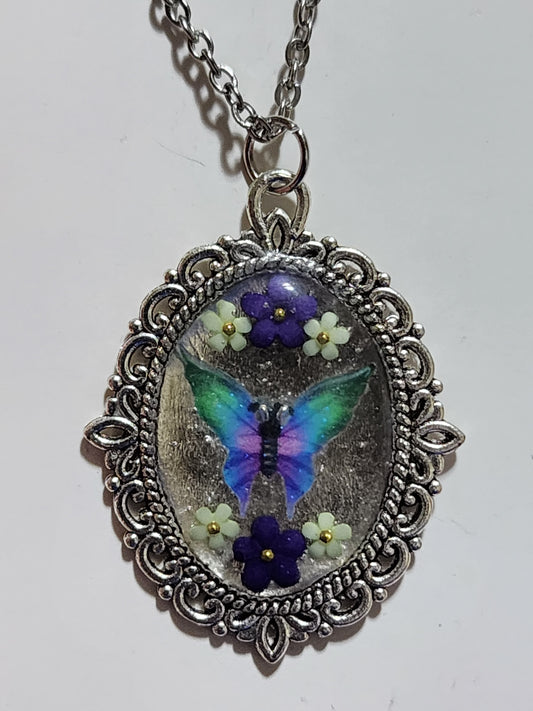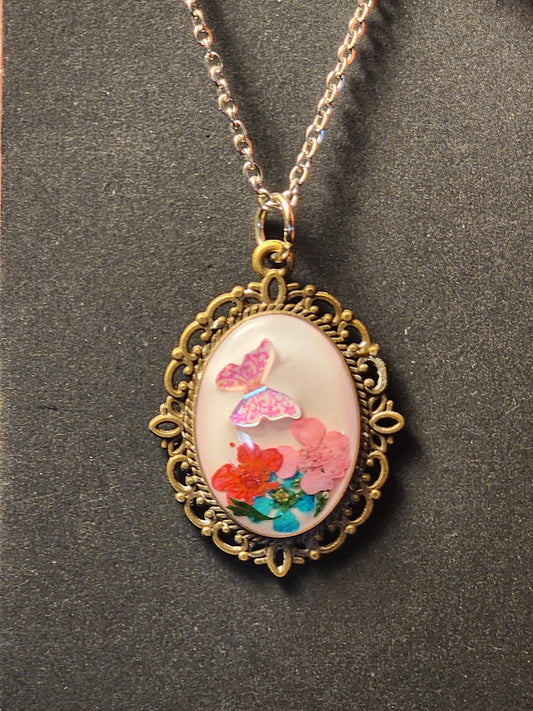 Vintage Oval floral butterfly Necklace